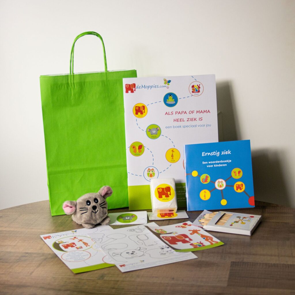 Met een TroostTasjes kun je jonge ouders in jouw praktische steun bieden. De boekjes geven op eenvoudige, kleurrijke wijze informatie en advies. Knuffel Moppie Muis blijft dichtbij als papa of mama heel ziek is.